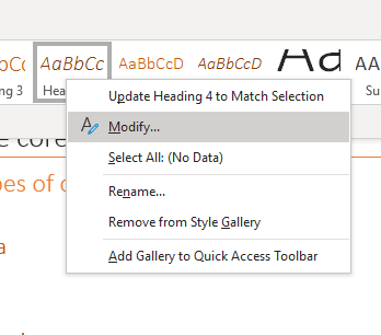 - right click on the heading style