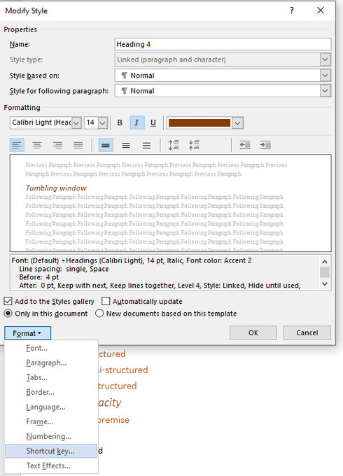 To set up a shortcut key for a heading, or other Style, in @Microsoft Word:
