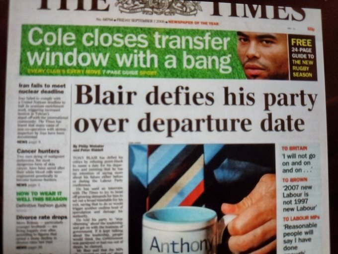 Couldn’t help noticing the banner headline about @TheRealAC3 on this paper, featured in the Blair and Brown doc