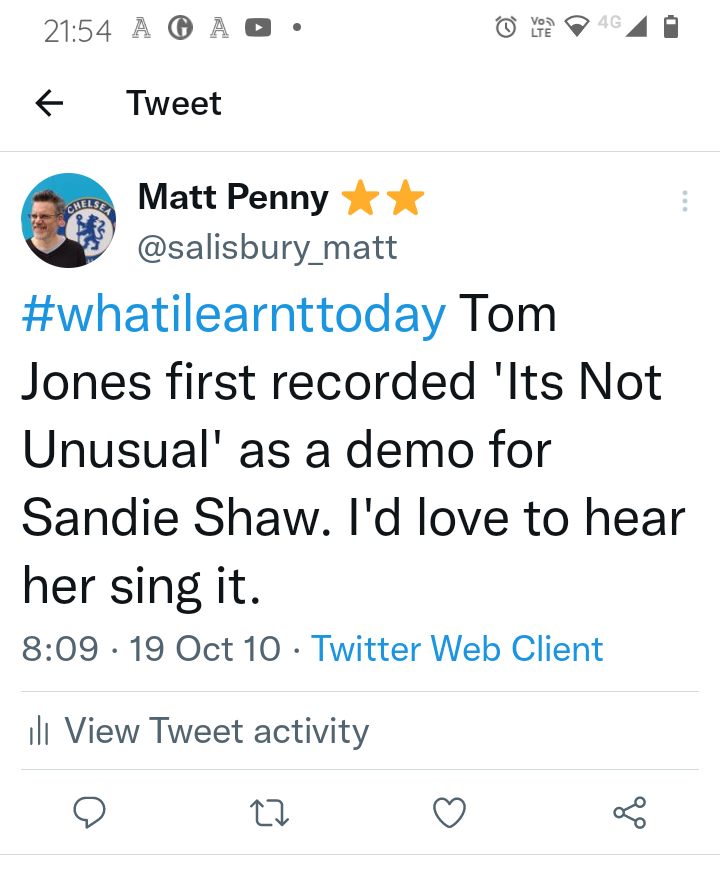 Matt Penny ⭐⭐ @salisbury_matt #TodayILearned that It’s Not Unusual was written for Sandie Shaw